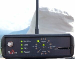 Le Flarm reçois les informations d’un autre appareil équipé (LED « RX » allumée), et réalise les calculs de trajectoires;